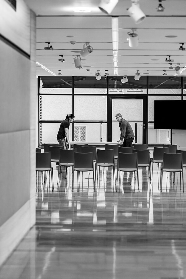 Im LOFT haben Sie die Möglichkeit, die Veranstaltung nach Ihren ganz individuellen Vorstellungen zu gestalten. Ob parallele Gruppenarbeiten in unterschiedlichen Seminarräumen, Präsentationen vor beeindruckender Kulisse oder ein Empfang für bis zu 150 Gäste – unsere flexiblen Raumkonzepte, modernste technische Ausstattung sowie vielfältige Services lassen keine Wünsche offen. Darüber hinaus steht Ihnen unser vielseitiges Netzwerk aus Technikpartnern, Caterern und Hotelkooperationen zur Verfügung. Bei Bedarf unterstützen unsere Inhouse-Experten Sie bei der Veranstaltungsorganisation.